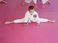 وضع الإنفراج الجانبي (side split) في لعبة الكاراتيه مثال على التبعيد الجانبي من عند الورك.