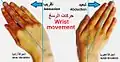 تبعيد الرسغ أو الإنحراف الكعبري (radial deviation)، و تقريب الرسغ أو الإنحراف الزندي (ulnar deviation).