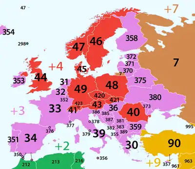 | Vatican City State (Holy See) | +39 06 698, assigned +379 | UTC+01:00 | UTC+02:00 |