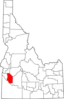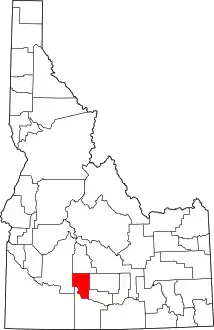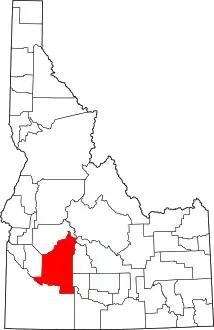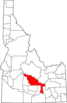 | مقاطعة إلمور | 039 | ماونتين هوم | 1889 | مقاطعة ألتوراس | E | إيدا إلمور ماين، أشتهر محليا بأنتاج الذهب والفضة في عقد 1860. | 27,038 | 3,078 ميل مربع (7,970 كـم2) | ![]() |