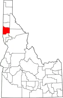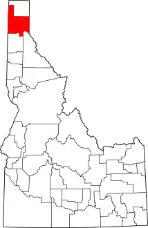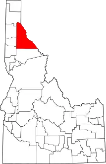 | مقاطعة بونير | 017 | ساندبوينت | 1907 | مقاطعة كوتيناي | 7B | إدوين أل. بونر، المنشئ لخدمة العبارات 1864 على نهر كووتناي. | 40,877 | 1,738 ميل مربع (4,500 كـم2) | ![]() |