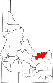 | مقاطعة أيداهو | 049 | غرانجفيل | 1864 | أحدي المقاطعات الأصلية عن أنشاء الولاية | I | باخرة ايداهو نهر كولومبيا الذي دشنت في عام 1860. اسم موجود قبل كل من أقليم أيداهو ولاية أيداهو. | 16,267 | 8,485 ميل مربع (21,980 كـم2) | ![]() |