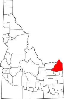 | مقاطعة كلارك | 033 | دوبويس | 1919 | مقاطعة فريمونت | 5C | سام كي. كلارك، المستوطنين الوال وعضوا في مجلس شيوخ ولاية ايداهو. | 982 | 1,765 ميل مربع (4,570 كـم2) | ![]() |