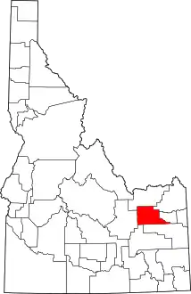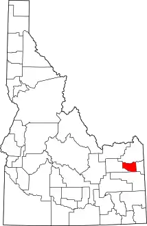 | مقاطعة بونيفيل | 019 | أيداهو فولز | 1911 | مقاطعة بينغهام | 8B | بنيامين بونفيل (1796-1878)، وهو مستكشف فرنسي المولد في الغرب. | 104,234 | 1,869 ميل مربع (4,840 كـم2) | ![]() |
