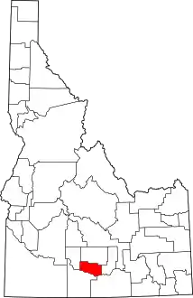 | مقاطعة كاسيا | 031 | بورلي | 1879 | مقاطعة أويهي | 4C | المتنازع علي أصل تسميتها، إما كاسيا كريك أو عضوا في كتيبة المورمون، جيمس جون كازير. | 22,952 | 2,567 ميل مربع (6,650 كـم2) | ![]() |
