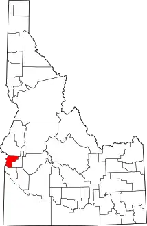 | مقاطعة واشنطن | 087 | ويسير | 1879 | مقاطعة أدا | W | جورج واشنطن (1732-1799)، أول رئيس للولايات المتحدة (1789-1797). | 10,198 | 1,456 ميل مربع (3,770 كـم2) | ![]() |