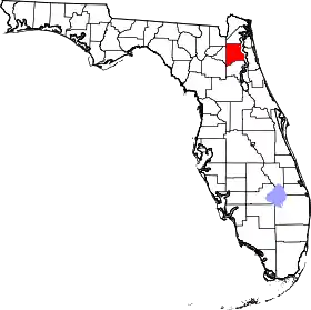 | مقاطعة سانت جونز | 109 | سانت أوغسطين | 1821 | واحدة من المقاطعتين الأصليتين عند انشاء الولاية | اسم مشتق من اسم نهر سانت جونز، والذي اسمه مستمد من سان خوان ديل بورتو | 321.55 | 195,823 | 609 ميل مربع (1,580 كـم2) | ![]() |