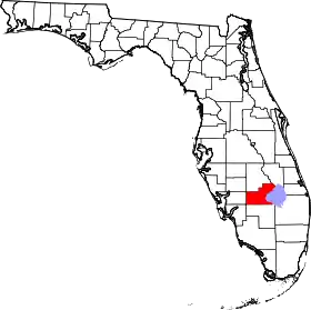 | مقاطعة إنديان ريفر | 061 | فيرو بيتش | 1925 | سانت لوسي | لاجون النهر الهندي، الذي يتدفق خلال المقاطعة | 276.13 | 138,894 | 503 ميل مربع (1,300 كـم2) | ![]() |