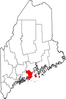 | مقاطعة كمبرلاند | 005 | بورتلاند | 1761 | تم أنشأوها كأحدي مقاطعات ولاية ماساتشوستس تحت اسم (مقاطعة كمبرلاند (ماساتشوستس )) كجزء من مقاطعة يورك ثم أنتقلت إلي ولاية مين | الأمير وليام أوغسطس، دوق كمبرلاند، ابن جورج الثاني ملك بريطانيا العظمى. | 281,674 | 1,217 ميل مربع (3,150 كـم2) | ![]() |