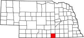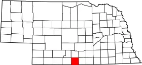 | مقاطعة غيج | 067 | Beatrice | 1855 | Unorganized territory | William D. Gage, a ميثودية minister who served as chaplain of the state legislature at the time the county was established | 3 | 22٬993 | 855 sq mi (2٬214 كم2) | ![]() |