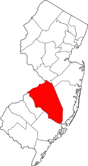 | مقاطعة برلنغتون | 005 | مونت هولي | 1694 | واحدة من المقاطعتين الأصليتين التي تم إنشاؤها في مستعمرة جيرسي الغربية | الاسم القديم للسوق الداخلية بالقرب بريدلينغتون، إنجلترا | 557.43 | 448,734 | 805 ميل مربع (2,080 كـم2) | ![]() |