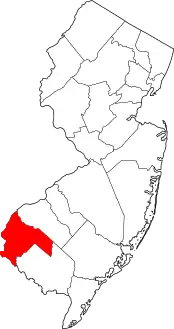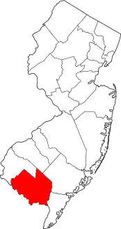 | مقاطعة كامدن | 007 | كامدن | 1844 | مقاطعة غلوستر | تشارلز برات، إيرل كامدن الأول (1714-1794)، وهو مؤيد للغة الإنجليزية من المستعمرين خلال الثورة الأميركية | 2,313.77 | 513,657 | 222 ميل مربع (570 كـم2) | ![]() |
