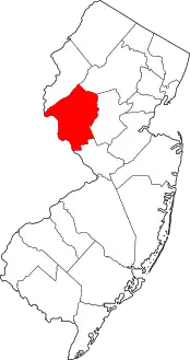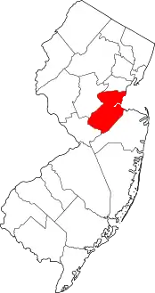 | مقاطعة ميرسر | 021 | ترنتون | 1838 | م أنشائها من مقاطعات برلنغتون، وهونتردون، وميدلسكس، وسومرست | أحد قادة الجيش القاري الجنرال هيو ميرسر (1726-1777)، الذي توفي في معركة برنستون | 1,621.74 | 366,513 | 226 ميل مربع (590 كـم2) | ![]() |