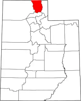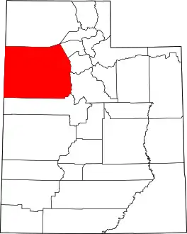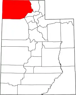 | مقاطعة بوكس إلدير | 003 | بريغهام سيتي | 1856 | جزء من مقاطعة ويبير | وجود عدد كبير من أشجار قيقب مانيتوبا في المنطقة | 49,975 | 5,746 ميل مربع (14,880 كـم2) | ![]() |