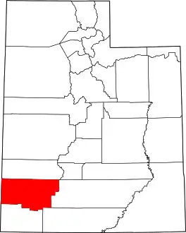 | مقاطعة كين | 025 | كاناب | 1864 | جزء من مقاطعة واشنطن | توماس أل. كين (1822-1883)، ضابط في الجيش الأمريكي الذي تحدث لصالح هجرة المورمون وتسوية يوتا | 7,125 | 3,990 ميل مربع (10,300 كـم2) | ![]() |
