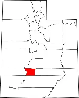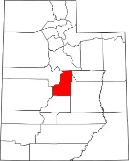 | مقاطعة سانبيتي | 039 | مانتي | 1849 | واحدة من مقاطعات ولاية ديسيريت | غير مؤكد اصل التسمية ربما أسم رئيس قبيلة يوت اسمه سان بيتش | 27,882 | 1,590 ميل مربع (4,100 كـم2) | ![]() |