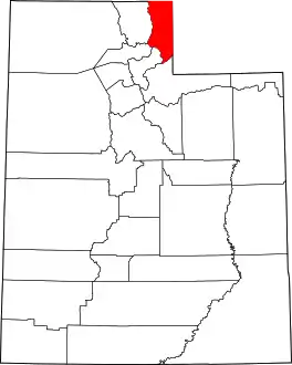 | مقاطعة ريتش | 033 | راندولف | 1864 | جزء من مقاطعة كاش | تشارلز جيم ريتش (1809-1883)، رسول من كنيسة يسوع المسيح لقديسي الأيام الأخيرة | 2,264 | 1,029 ميل مربع (2,670 كـم2) | ![]() |