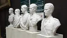 تماثيل نصفية منحوتة لأول خمس ملوك بلجيكيين في المتحف الملكي للقوات المسلحة.