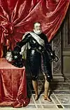 ![]() | ![]() | لويس الثالث عشر العادل (Louis XIII le Juste) | (27 سبتمبر 1601 - 14 مايو 1643) | 14 مايو 1610 | 14 مايو 1643 | • ابن هنري الرابع | ملك فرنسا ونافارا (Roi de France et de Navarre) |
