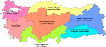 تُقسم تركيا إلى 7 مناطق (بالتركية : Bölge) تندرج تحتها محافظات تركيا، وحُدِّدت المناطق في المؤتمر الجغرافي الأول في عام 1941.[1] المناطق كما هو محدد في هذا السياق هو لمجرد أغراض الإحصائية.