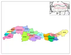 ينقسم اقليم وسط الأناضول إلى 13 محافظة وهم: