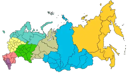 حاليا تنقسم روسيا إلى ثمانية منطقة فدرالية، وهي: