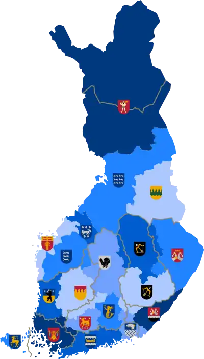 | لابي | Lappi | Lappland | روفانييمي | ![]() مناطق فنلندا (الحدود التاريخية للأقاليم تظهر باللون الرمادي) | |