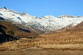 | منتزه دراكنسبرغ/يوخاهلامبا | كوازولو ناتال | مختلط | 2000 | يشتمل هذا المنظر الطبيعي الرائع على الكثير من المآوي ما دون الصخرية وعلى مغاور تضمّ أكبر كثافة من الرسوم الصخرية في أفريقيا جنوب الصحراء، وهي رسوم أنجزها شعب السان على مدى 4000 سنة [30]. | ![]() | |
