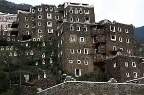 قرية رجال ألمع التراثية | منطقة عسير | ثقافي | 6030 | 2015 | تقع القرية في محافظة رجال ألمع الواقعة بمنطقة عسير. كانت القرية تعتبر نقطة مهمة، حيث كانت تربط بين القادمين من اليمن وبلاد الشام مروراً بمكة المكرمة والمدينة المنورة، الأمر الذي جعلها مركزاً تجارياً هاماً. تتكون القرية من نحو 60 مبنىً بنيت من الحجارة الطبيعية والطين والأخشاب، ويضم الموقع متحف دار ألمع للثقافة والتراث الذي أنشأه أهالي المحافظة.[22] |