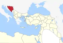 8 أقضية | 1867م | 1913م نزعتها مُعاهدة لندن من الدولة العُثمانيَّة وضُمَّت إلى مملكة ألبانيا[18] |