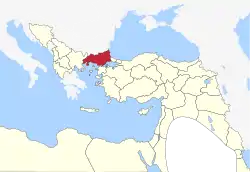 627,379 | أدرنة | 8 سناجق: أدرنة، قرقلر إيلي، تكرطاغ، گاليپولي، دده آغاچ، كُومُلنجة، فيلبة، سليمية |