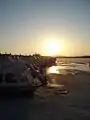 في بعض الأقاليم، مثل شمال روسيا، تتجمد الأنهار في الشتاء. تظل القوارب النهرية "محاصرة بالجليد". ميناء قازان، في أواخر شهر مارس.