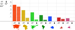 | انتاركتيكا (المتجمدة الجنوبية) | 13,720,000 | 5,300,000 | 9.2% | 4,490[3] | 0.0% |