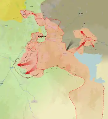كان لسليماني تأثير حاسم على مسرح العمليات، وقد ادّى دوره إلى تقدم كبير في جنوب حلب، حيث استولت الحكومة والقوات المتحالفة على قاعدتين عسكريتين وعشرات البلدات والقرى في غضون أسابيع. كما حصلت هناك سلسلة من التطورات الرئيسية تجاه قاعدة كويريس الجوية إلى الشمال الشرقي.[59] بحلول منتصف نوفمبر، استحوذ الجيش السوري وحلفاؤه على المناطق الجنوبية من محافظة حلب، ثم استولوا على العديد من معاقل الثوار. وورد أن سليماني قاد شخصيًا القيادة في عمق ريف حلب الجنوبي؛ حيث استعادت الحكومة العديد من البلدات والقرى. ويقال إنه قاد الفرقة الآلية الرابعة التابعة للجيش العربي السوري، وحزب الله، وحركة النجباء، وكتائب حزب الله، ولواء أبو فضل العباس، وفرقة الفاطميون.[60]