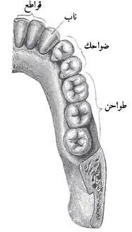 |CitationClass=تم تجاهله (مساعدة) - Scheid, RC. (2012). Woelfel's dental anatomy (الطبعة 8). Philadelphia: Wolters Kluwer Health/Lippincott Williams & Wilkins. الوسيط