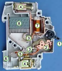 - ملف كهربائي يفصل أطراف التلامس بسرعة عند التعرض لتيارات عالية.