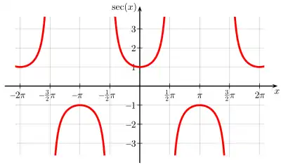 ![]() تمثيل دالة القاطع في جملة الإحداثيات الديكارتيّة | |