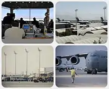 المطار يأتي مع مدرج مزدوج قادر على التعامل مع أي حجم من الطائرات العسكرية، بما في ذلك طائرات شركة بوينغ سي-17 غلوب ماستر 3 وأنتونوف أن-225. وتحتل القاعدة بشكل رئيسي من قبل القوات المسلحة الأميركية، وقوات ايساف ووكذلك نسبة من الجيش الأفغاني.