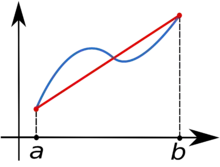 الدالة f(x) (باللون الأزرق) تم تقريبها بدالة خطية (باللون الأحمر).