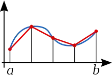 لحساب التكامل بدقة أفضل، يمكن فصل فترة التكامل أولا إلىn فترات أصغر، ومن ثم تطبيق قاعدة شبه المنحرف على كل فترة. يمكن تحصيل قاعدة شبه المنحرف المركب: