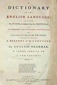 لم يستحسن الناس ما تواجد آنذاك من القواميس للغة الإنجليزية؛ فقام مجموعة من بائعي الكتب في لندن في تاريخ يونيو 1746 بمخاطبة جونسون طالبين منه كتابة القاموس الذي أرادوه، مقابل مبلغ 1.575 جنيها. استغرق جونسون تسع سنوات لإنهاء العمل على القاموس.