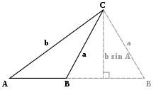 - أن يكون الضلع a أطول من ارتفاع المثلث القائم الذي وتره b وإحدى زاوياه A (أي a> b sin A).
