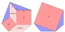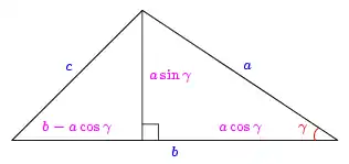 - هي أيضاً تعميم لمبرهنة فيثاغورس على أي زاوية من زوايا المثلث (ليست بالضرورة قائمة).