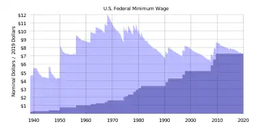 وفي 25 مايو 2007، وقع الرئيس بوش القانون التكميلي رقم (2206) الذي يتضمن قانون الحد الأدنى للأجور لسنة 2007م، (74) وبموجبه تم تعديل "قانون معايير العمل العادل "حيث أتاح زيادة الحد الأدنى الفدرالي للأجور عبر خطة مرحلية ستبلغ ذروتها بحد أدنى للأجور قدره(7.25) دولار في الساعة بحلول تاريخ 24/يوليو/ 2009, وعلاوة على ذلك فانه يتوجب على جميع المقاطعات الأمريكية خارج أمريكا الشمالية, بما في ذلك سامو الأمريكية وبورتوريكو تطبيق هذا الحد الأدنى للأجور عبر سلسلة من الزيادات المرحلية.