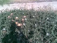 - الشجيرة معمرة، شائكة، خضراء رمادية ذات أفرع عديدة، خشبية زاحفة متسلقة يصل طولها إلى 70 سم.