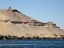 يمكن الوصول إلى المقابر المنحوتة المرتفعة من طريقين مائلين نحو النيل على الناحية الشرقية، مستقيمان معبدان لصعود ونزول مجموعات الناس ولكل منهما جدارين حجريين . وتوجد مقابر نبلاء قدماء المصريين في ثلاثة طبقات على ارتفاع في وسط الجبل .[1] وقد فاق عدد المقابر من عهد قدماء المصريين 100 مقبرة، وكان مدفونا فيها نحو 1000 شخص من رجال ونساء وأطفال ؛ يعود أغلبهم إلى عهد الدولة القديمة و الدولة الحديثة .