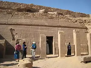 في عام 1946 بدأ عالم الآثار المصري لبيب حبشي عمليات حفرياته التي استمرت حتى 1951. وأرسلت جامعة بون بألمانيا بعثة للتنقيب وعلى رأسها "إلمار إيدل" في عام 1959 وظلت تعمل حتى 1984. كما اشترك في الحفريات "وليس بدج " والباحث المصري "محي الدين " و "ميشيل جنكينز" . الحفريات القائمة حاليا يقوم بها المعهد الألماني للآثار DAI تحت رعاية "كارل سيفريد".