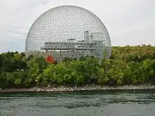 يُشار بالذكر إلى أن أول تصميم لقبة جيوديسية قد تم على يد المعمار الأمريكي ريتشارد بوكمينستر فولر عام 1967 لقبة متحف بايوسفير في مونتريال، كندا.[3] فقد لاحظ فولر أن المواد الإنشائية السائدة قد تتحمل الضغط، كما أنها تتسم بالثقل والحجم الكبير، ولكن القليل منها يتحمل الشد، لذا ركز على المواد التي تتحمل الشد والخفيفة الوزن ذات القطاعات الصغيرة وذلك ليمكنها احتمال قوى الالتواء والتقوس عند تعرضها لقوى الضغط.[1]