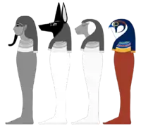 | الاسم | التجسيم | العضو المحمي | الإلهة الحامية | الجهة الأصلية |