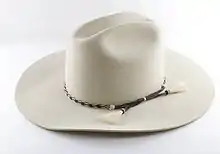| قبعة رعاة البقر | قبعات مصنوعة من اللباد أو القش، ذات حواف عريضة جدا (أربعة بوصات أو أكثر) للحماية من المطر والشمس. | |